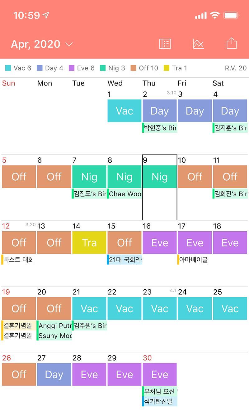 한 가지 아쉬운 점이 있다면, 이렇게 작성된 근무표를 또 출력해서 각자 3교대 근무표를 받아 들고 그것을 다시 본인의 스마트폰의 3교대 관리 앱에 입력하고...