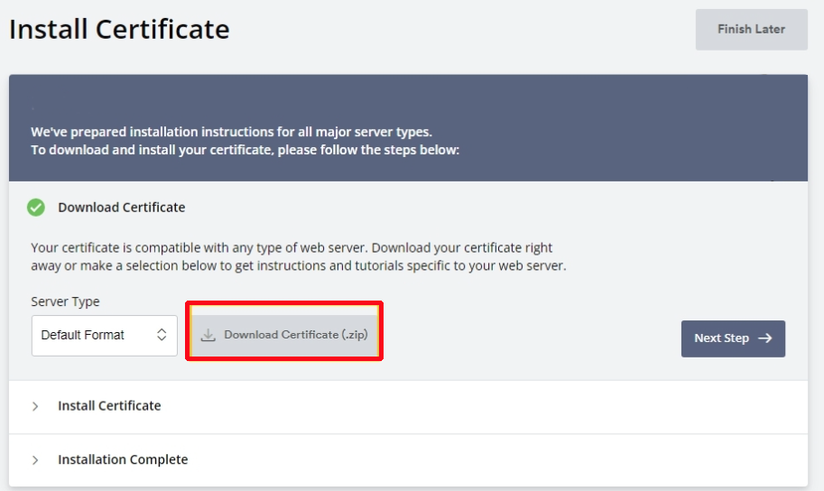 - 인증서 다운로드: 도메인 소유가 확인되면, 인증서를 다운로드 받습니다. ZIP 파일 안에는