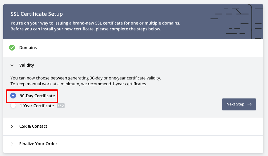 - 도메인 소유권 확인: 도메인의 소유권을 확인하기 위해 이메일, DNS, HTTP File Upload 중 하나의 방법을 선택하여 인증을 진행합니다.