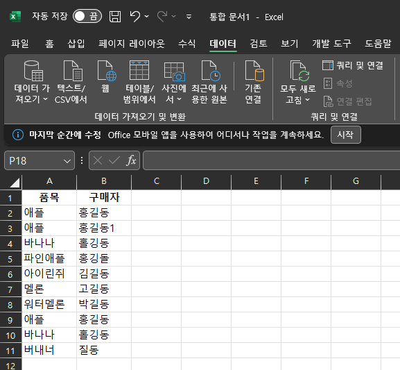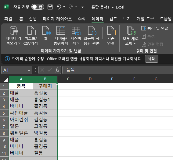 이제 EXACT 함수를 활용하여 중복값을 찾고 제거하는 방법에 대해 알아보겠습니다.