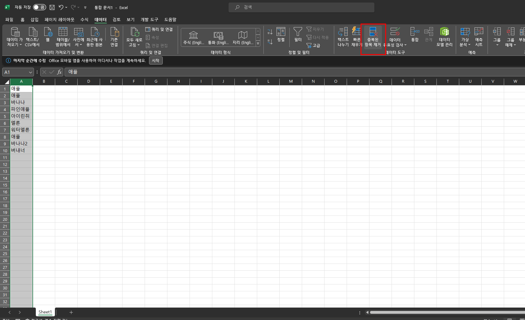 먼저, 하나의 열만 있는 데이터의 중복값을 제거하는 방법을 살펴보겠습니다.