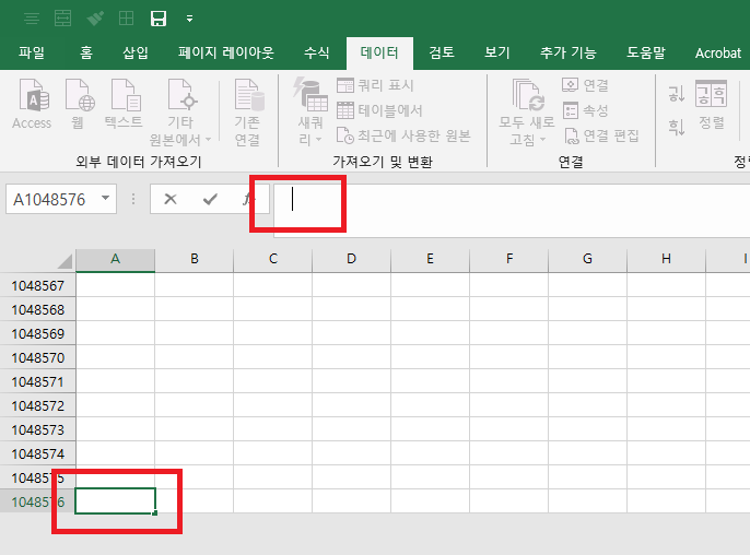 엑셀에서는 총 ‘1048576’ 라인까지만 생성이 가능하다.
