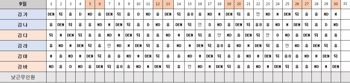 간호사3교대 근무표 엑셀 양식