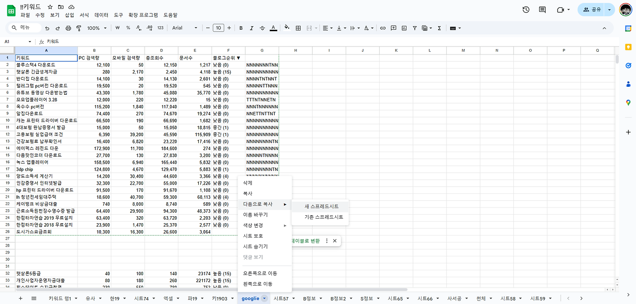 구글 스프레드시트 시트 복사 및 이동의 장점