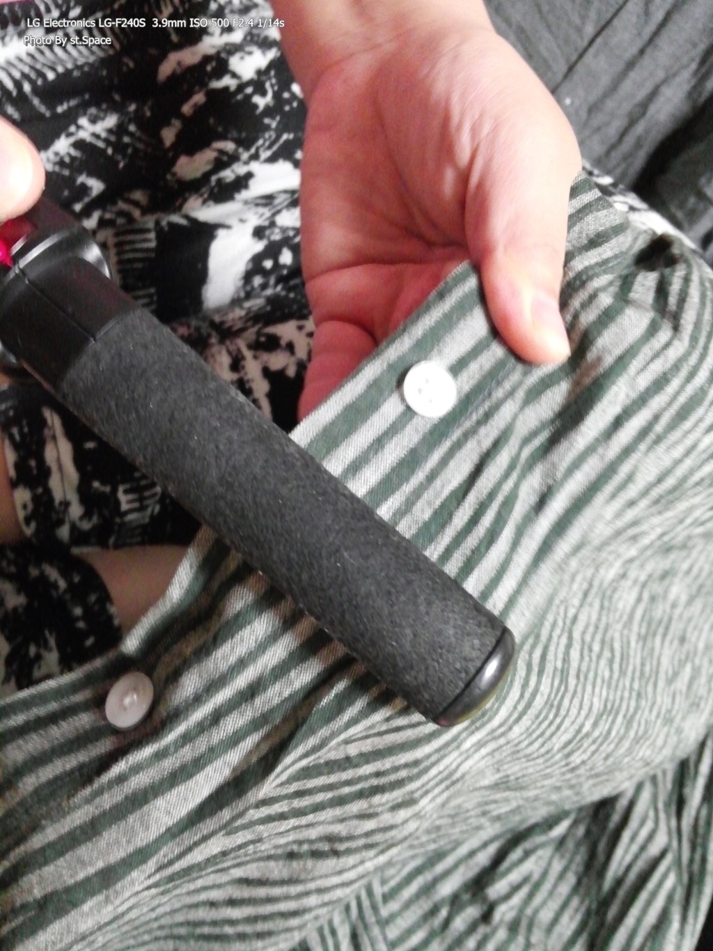 다리미를 꺼내고 다림질 판까지 꺼내기 귀찮을 때, 화장대에 놓여 있는 고데기를 이용해서 단추 있는 쪽만 살짝 다림질하듯이 펴주는 방법이 있어요.