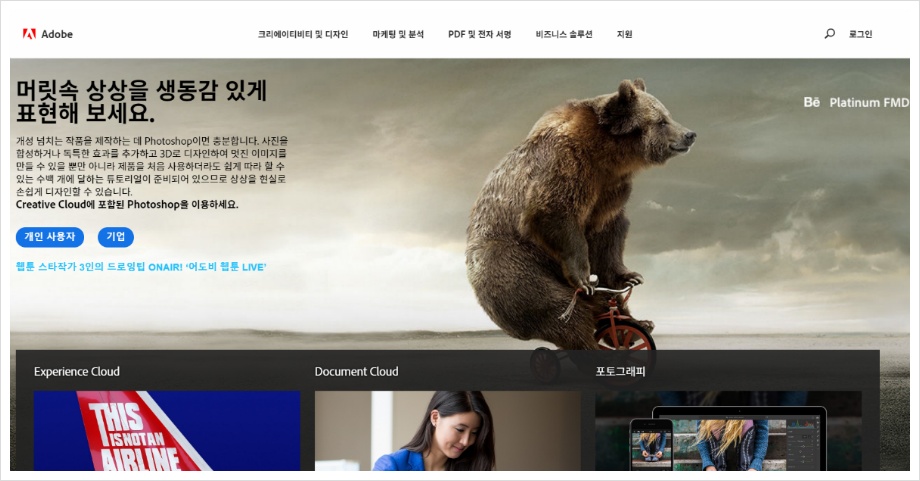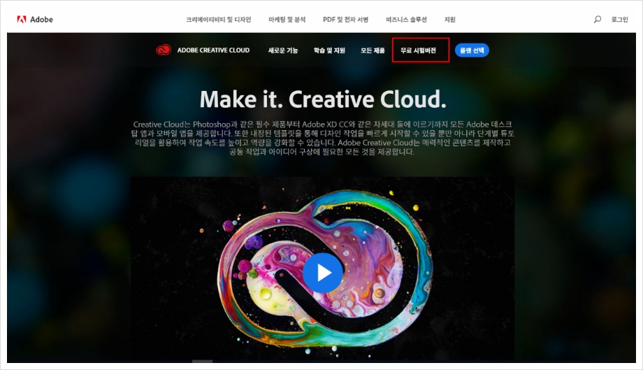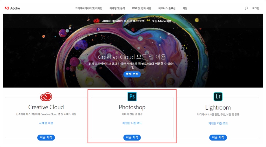 먼저 어도비 홈페이지에서 포토샵 정품을 정식으로 다운로드합니다.