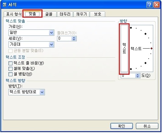엑셀에서 글자방향 세로로 돌리기 셀서식 단축키