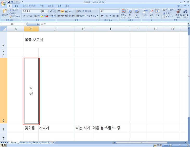 해당하는 사진이라는 글자의 셀을 선택, 오른쪽 마우스 버튼을 눌러 셀 서식을 선택합니다.
