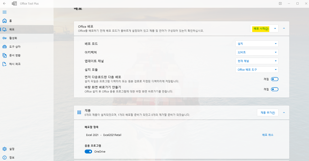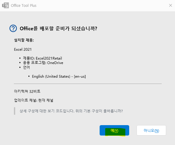 Excel 2021을 선택한 후 “배포 시작” 버튼을 클릭하세요. “Office를 배포할 준비가 되셨습니까?”라는 메시지가 나오면 성공적으로 진행 중입니다.