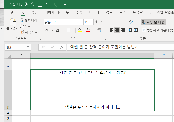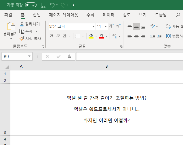 엑셀에서의 한계: 줄간격 조절