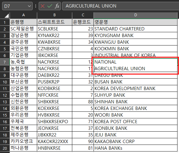 를 눌러서 원하는 위치에서 새로운 줄을 시작할 수 있습니다. - 메뉴를 통한 설정: 선택한 셀에서 마우스 오른쪽 버튼을 클릭한 후