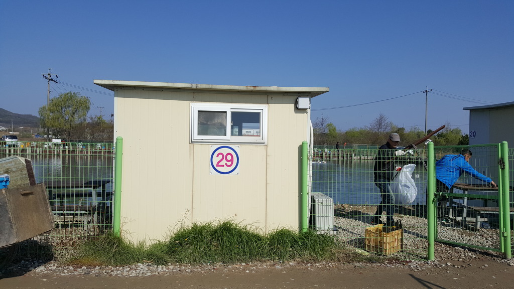 일찍 출발하여 8시 30분에 정성 바다낚시터에 도착했을 때, 이미 사람들이 많이 모여있었다. 예약했던 29번 방갈로를 배정받았지만, 누군가 이미 점령한 상태였다. 아마도 돈을 내지 않고 몰래 사용하던 사람일 것이다.