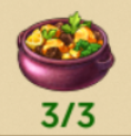 - 스튜 오븐과 그릴: 스튜 3개를 준비해야 합니다. 스튜 1개를 만들기 위해 필요한 재료는 고기 2개, 고구마 4개, 토마토 1개, 고추 1개입니다. 조리 시간은 1시간입니다.