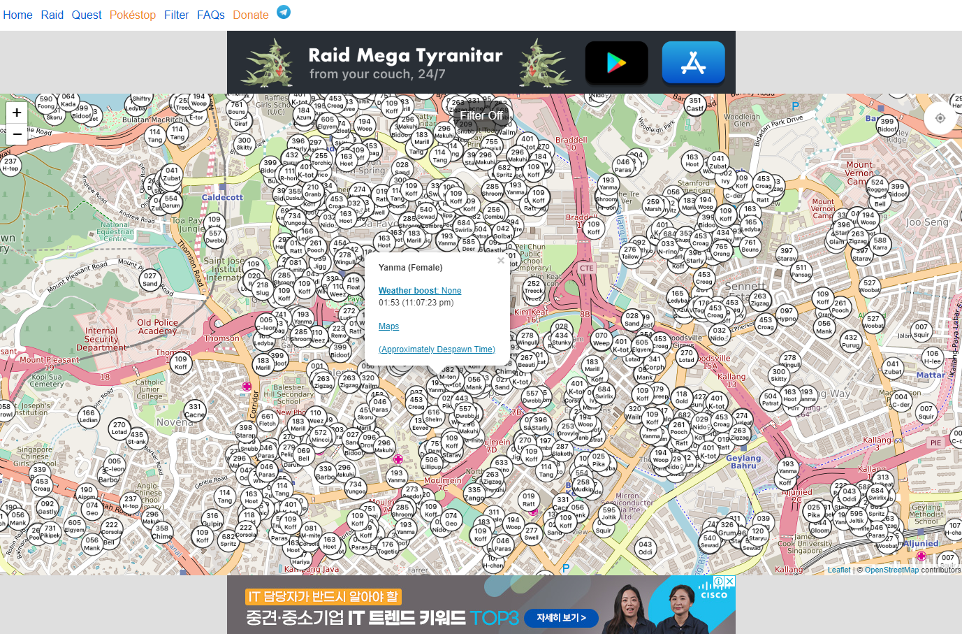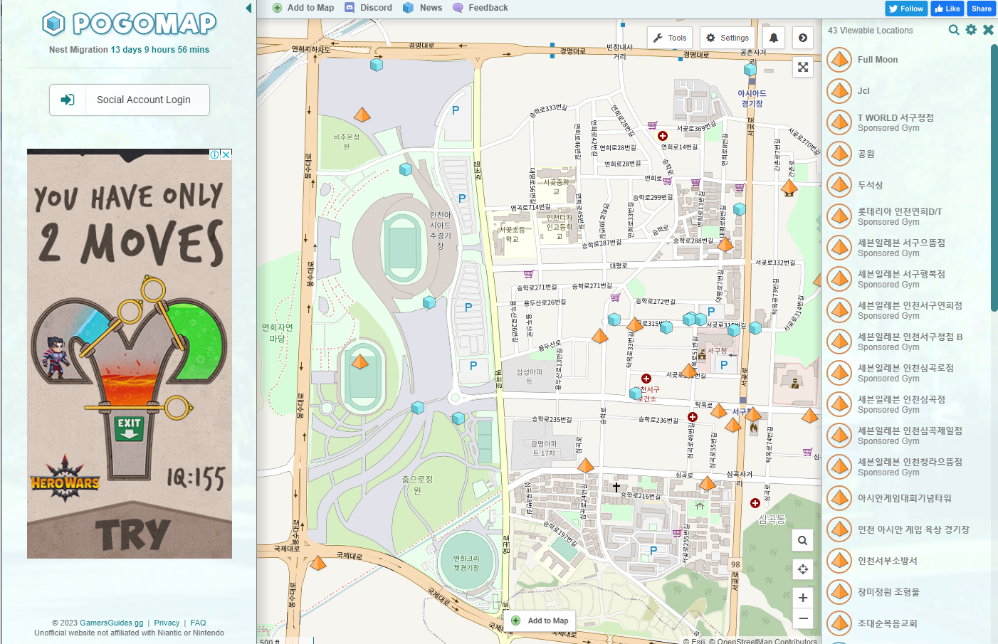 - PokémonGO Map(https://www.pogomap.info/): 이 사이트는 전 세계의 실시간 포켓몬 위치를 지도 위에 표시해 줍니다. 디스코드를 기반으로 합니다.