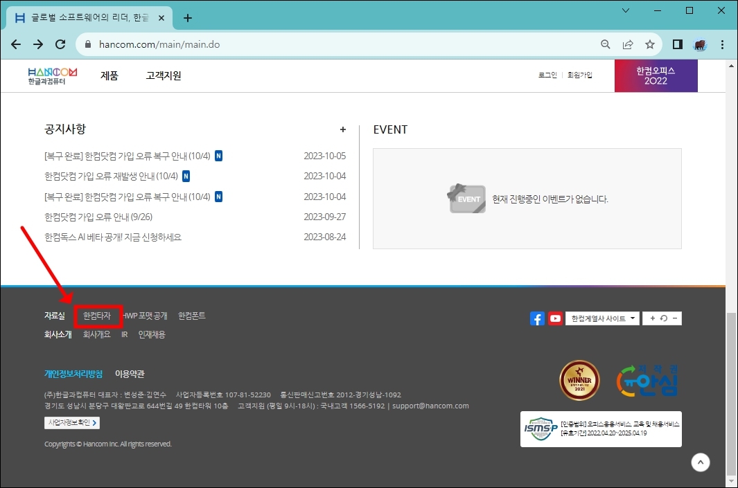 - 한글과 컴퓨터의 공식 홈페이지에 접속합니다.