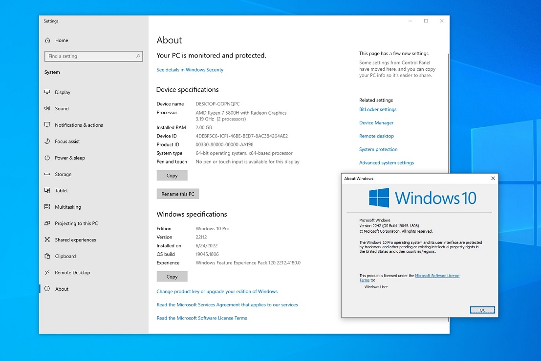 Windows 10 버전 22H2: 스타트 메뉴 개선, Microsoft Edge, 가상 데스크톱, Windows Hello, 시스템 최적화, 배터리 수명 연장, 게임 모드, Windows Defender, BitLocker, 네트워크 보안, 설정 앱, 알림 센터, 다크 모드 개선