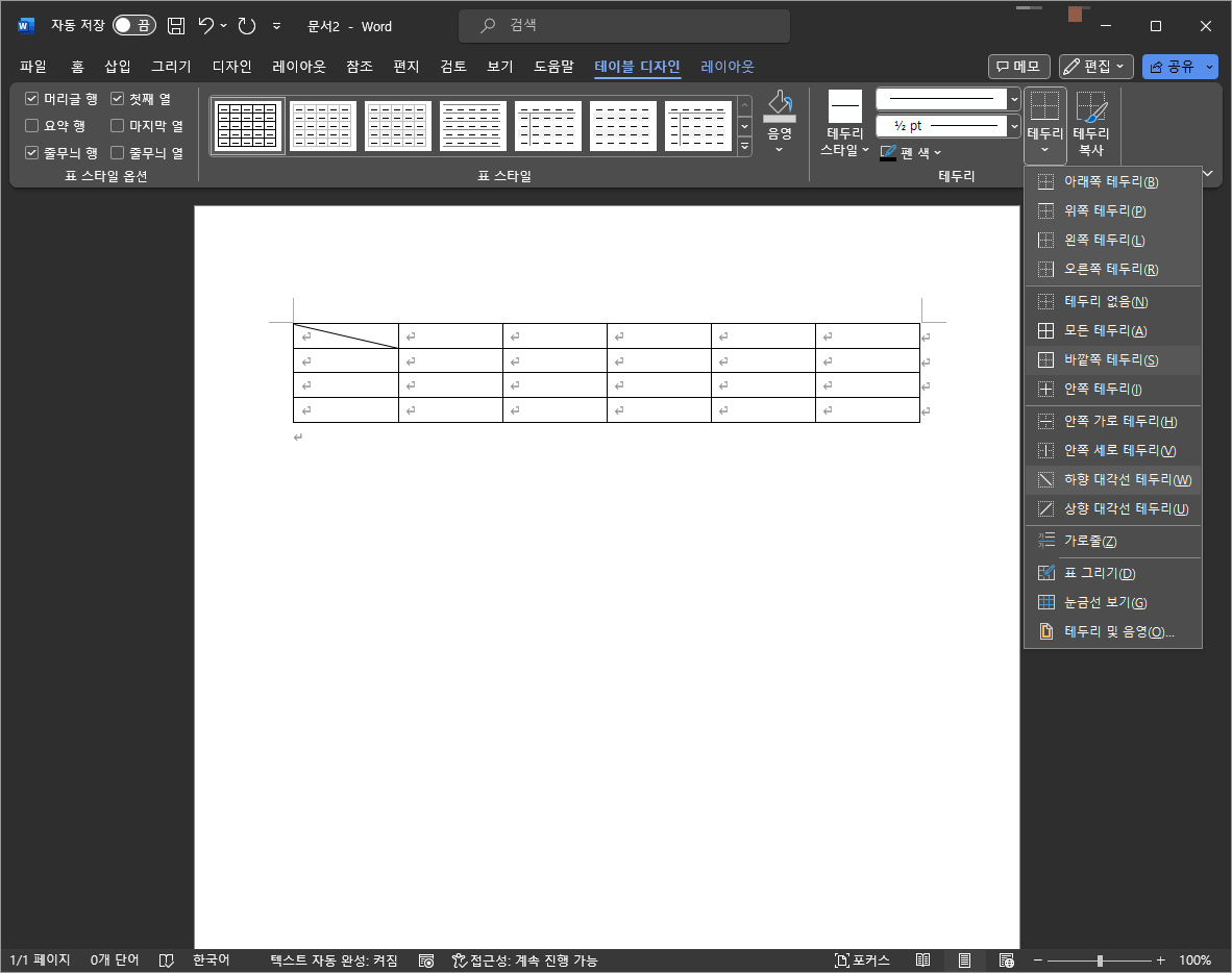 MS 워드에서 표에 대각선 넣기: 왜 필요하고 어떻게 하는가?